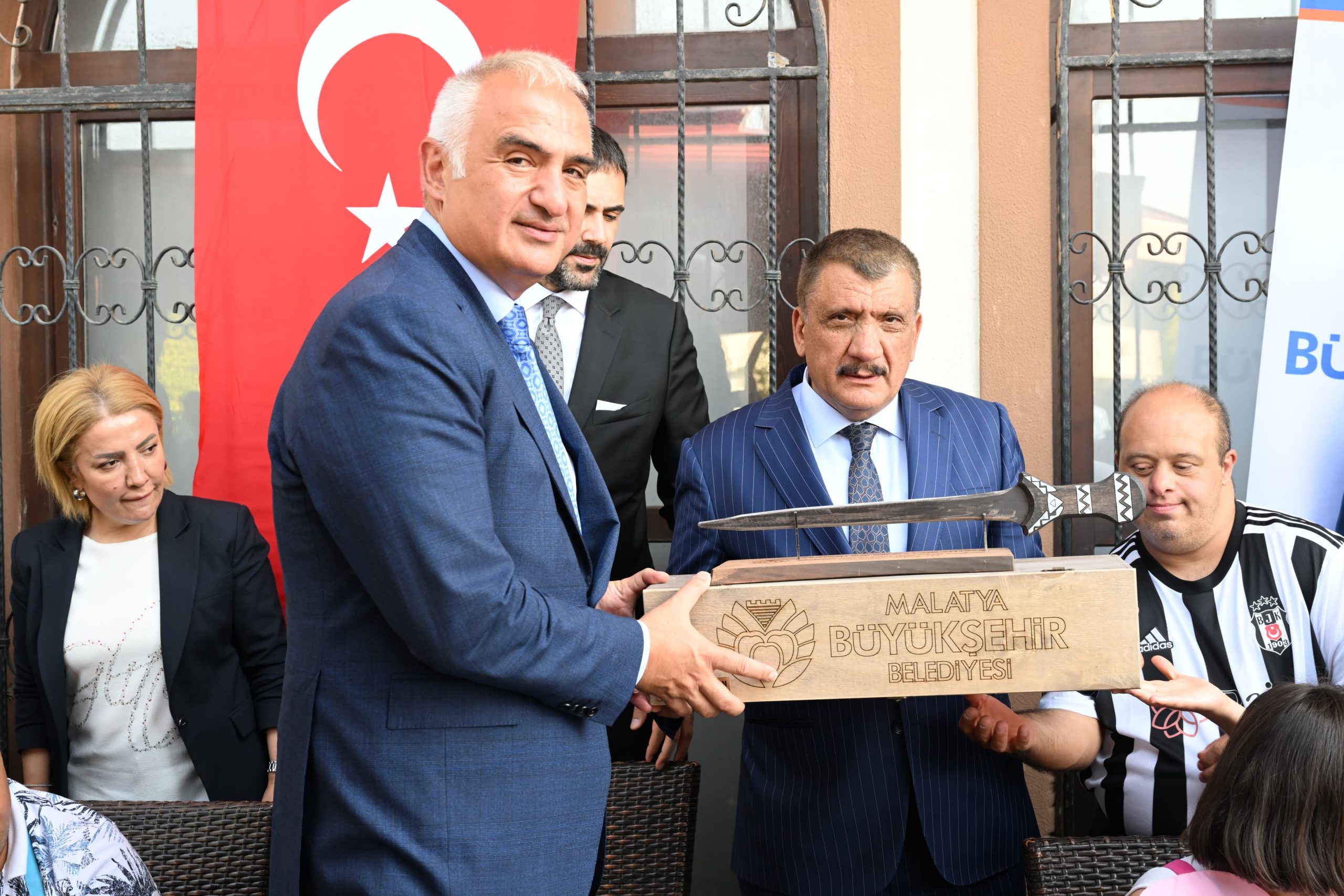 Arslantepe Karşılama Merkezi temel atma törenine katılmak ve bir dizi incelemelerde bulunmak üzere ilimize gelen Kültür ve Turizm Bakanı Mehmet Nuri Ersoy, Sanat Sokağı’nda bulunan Gülen Yüzler Kafe’yi de ziyaret etti. Gülen Yüzler Kafe’de çalışan Down Sendromlu çocuklarla bir süre sohbet eden Bakan Ersoy, çocukların söyledikleri şarkıları da dinlemeyi ihmal etmedi. Malatya Büyükşehir Belediye Başkanı Selahattin Gürkan, Gülen Yüzler Kafe ziyaret eden Bakan Ersoy’a Damascus Kılıcı ve tesbih hediye etti.