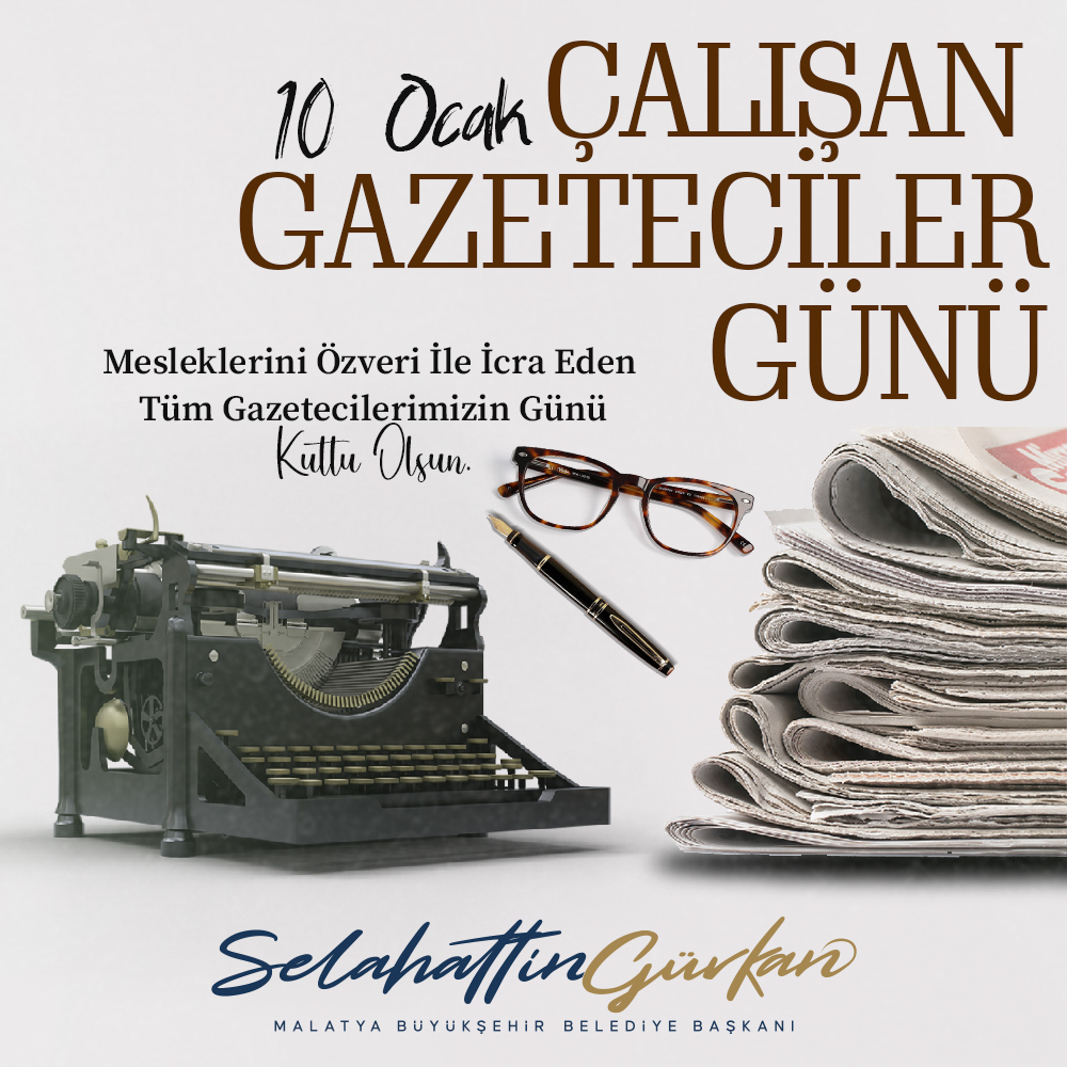Malatya Büyükşehir Belediye Başkanı Selahattin Gürkan, 10 Ocak Çalışan Gazeteciler Günü dolayısıyla bir mesaj yayınladı. Başkan Gürkan, gece gündüz demeden halkın haber alma hakkı için fedakârca çalışan basın mensuplarının 10 Ocak Çalışan Gazeteciler Günü’nü kutladı.