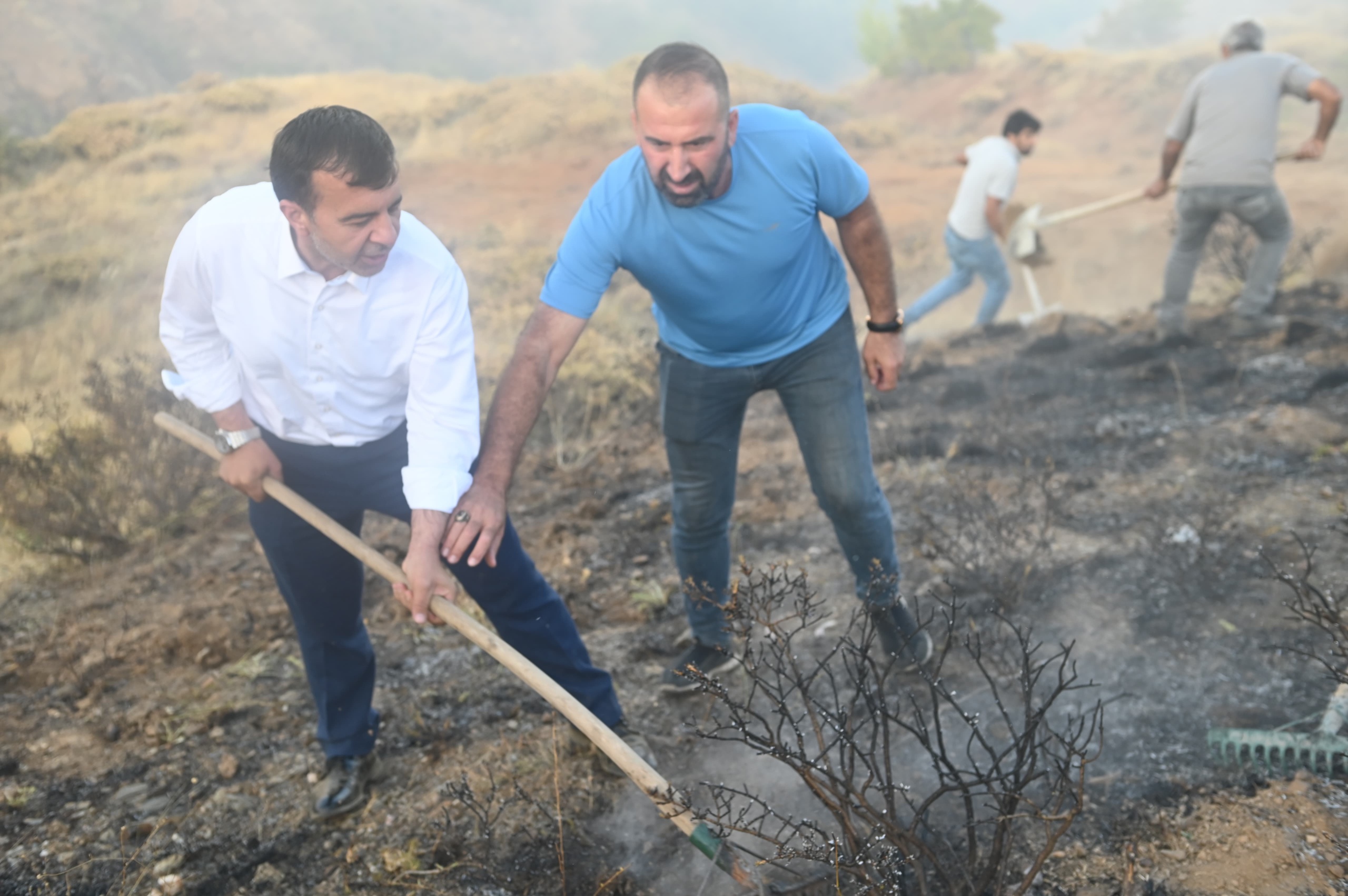 BAŞKAN SÜLÜK ELİNDE KÜREKLE YANGINA MÜDAHALE ETTİ